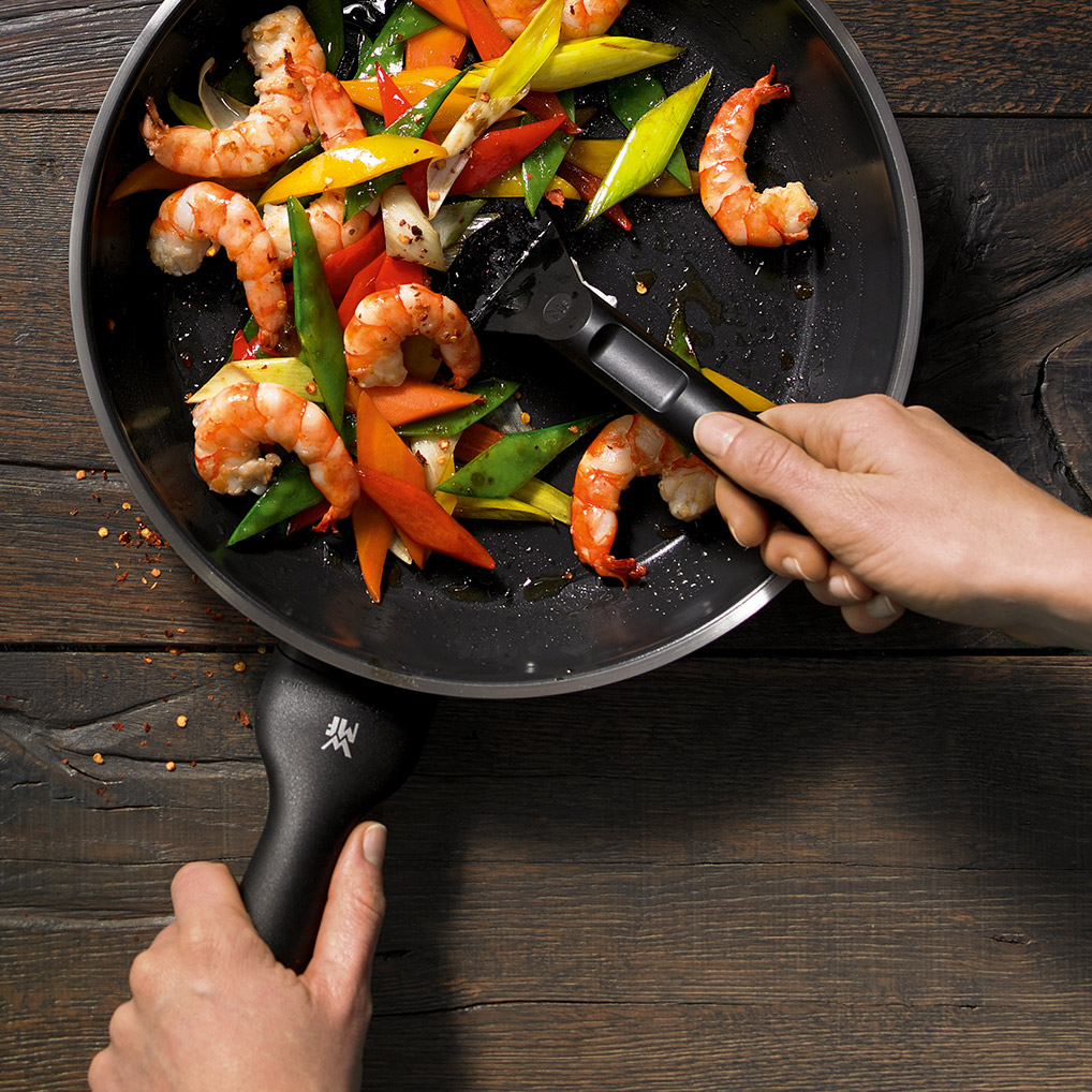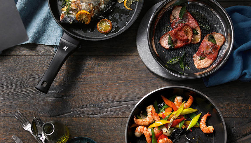 The food‘s sizzling in the frying pan, while delicious flavours fill the room. Whether you’re preparing a steak that's grilled to perfection, or crispy vegetables, WMF frying pans are a perfect match for all keen cooks.