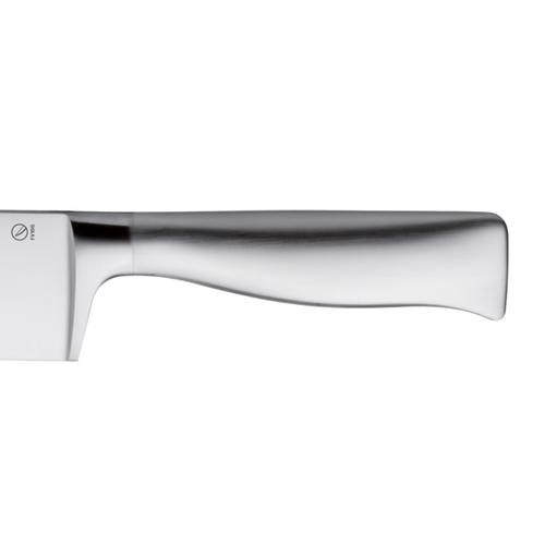 The slightly curved and tapered blade is characteristic of carving knives, which usually measure between 15 and 30 cm long and can cut and slice through large and thick roasts with utter ease. The shape and sharpness ensure that the delicate fibers are cleanly separated and that the precious meat juice is retained – whether for roast beef, leg of goose or even fish. The WMF carving knife from the Grand Gourmet collection with a blade length of 20 cm is no exception. But it looks far more impressive than other knives. The excellent functionality of the entire Grand Gourmet collection is stylishly presented with the multi-award-winning design by the famous Japanese designer Makio Hasuik, making the knife series a real highlight in every kitchen.
