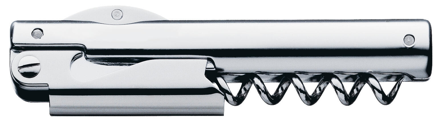 Fine wines require careful opening. The Vino Sommelier Knife by WMF sits proudly alongside professional bar tools, with a 3-in-1 design that blends function and aesthetics. Its sharp blade effortlessly cuts and removes the capsule on bottle necks, while the precision-pointed coated screw glides effortlessly into all kinds of corks. It's even suitable for sparkling wines. Conceived by award-winning designer Wolf Udo Wagner, this essential waiter's knife features a stunning design that fits perfectly in the hand and is rounded off by a practical bottle opener.