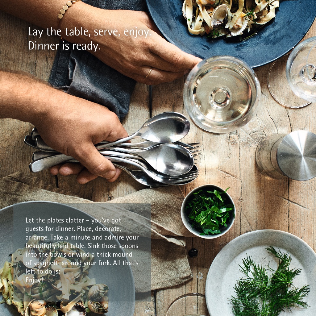 Box contents: 6 each of dinner spoons, dinner forks, dinner knives, coffee spoons and dessert forks