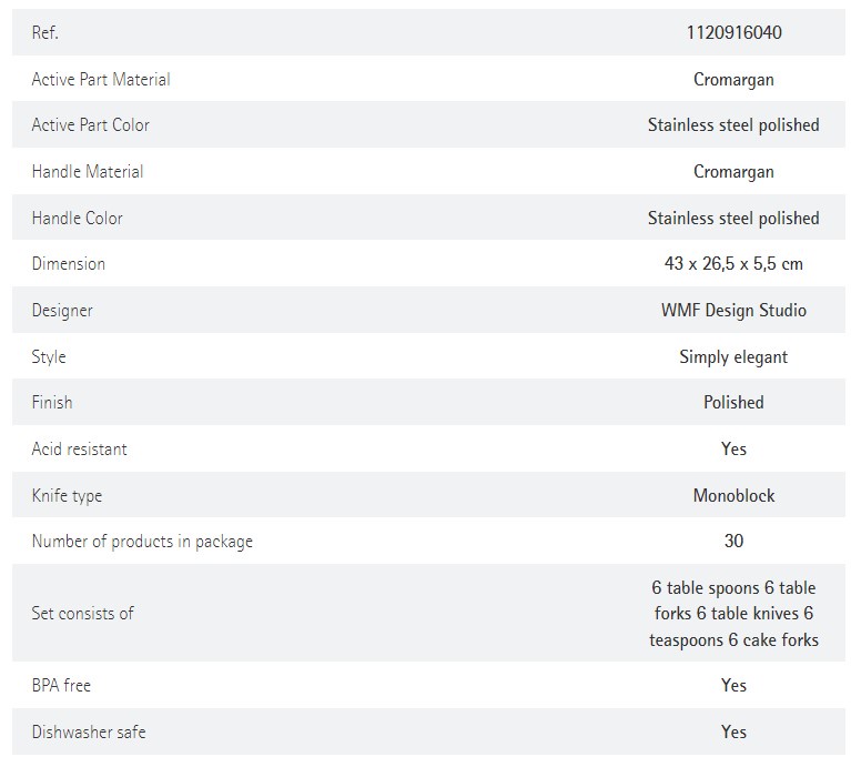 WMF Boston Cutlery Set 30-Pcs Cromargan