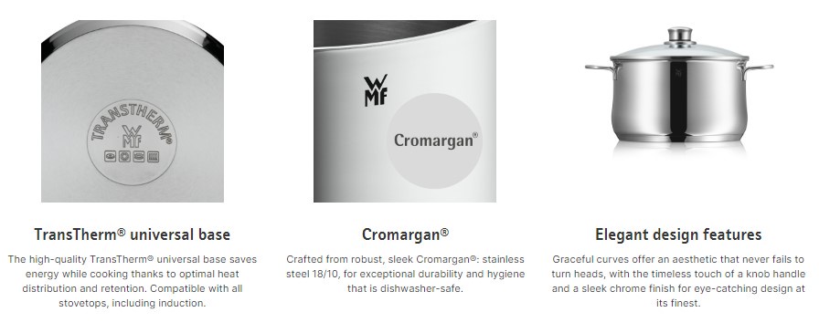 Exceptional cookware that combines performance with aesthetics: The WMF Diadem Plus Soup Pot adds a touch of refinement to your home cooking, with elegant design and high-quality results every day.
