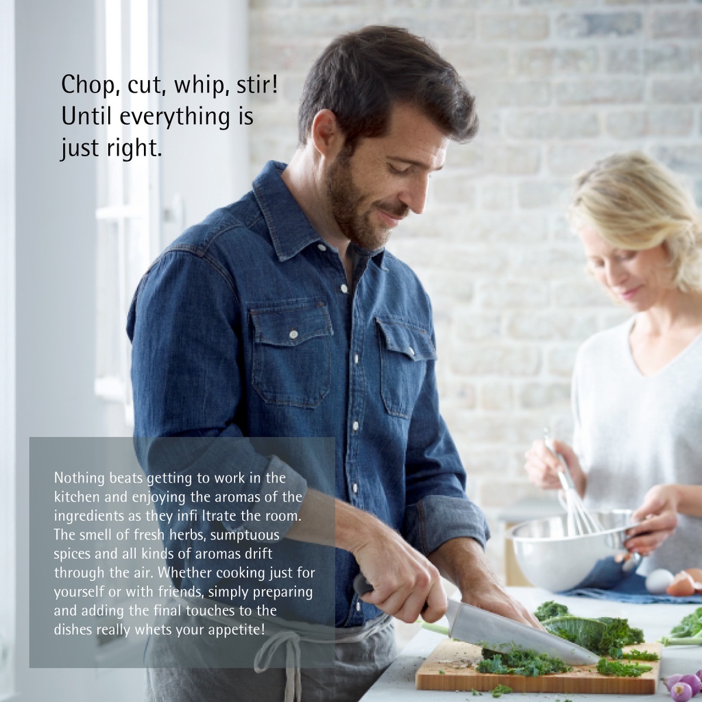 Ergonomically shaped handle and perfectly balanced weight of blade and handle for comfortable handling. Jointless workmanship makes it perfectly sanitary - no noticeable transitions between blade, guard and handle. Cleaning the knife: Hand-wash.