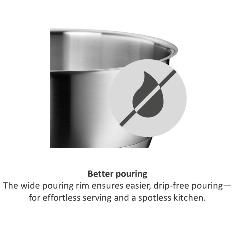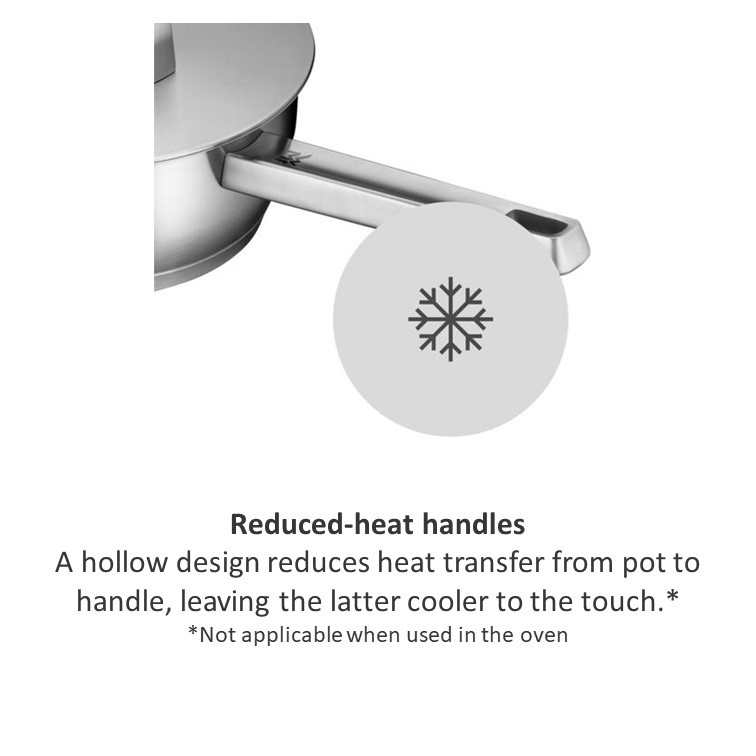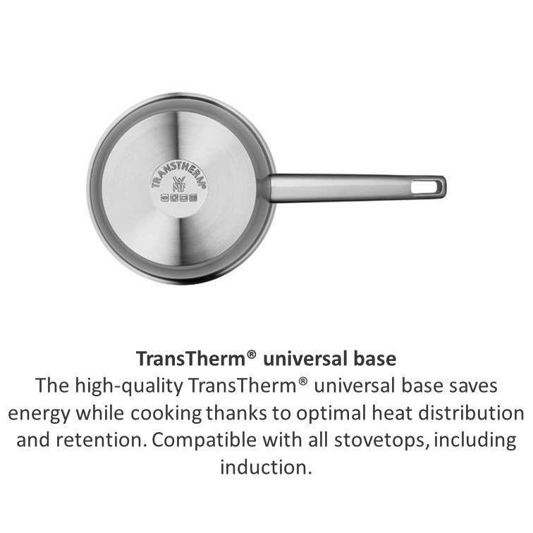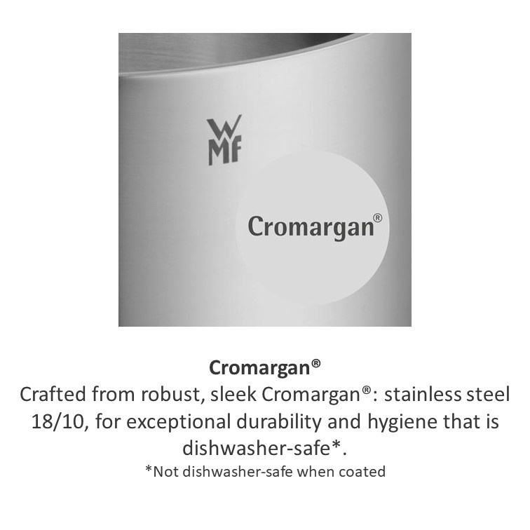 The WMF Iconic Saucepan with Lid makes a perfect addition to any kitchen, offering exceptional design and convenience with a reduced-heat handle, built-in steam vent and handy measuring marks. Combining performance with safety, the robust double-walled stainless steel lid features a built-in vent for controlled steam release. Discover premium stainless steel cookware crafted from robust Cromargan®: stainless steel 18/10 with a matte finish that stands the test of time.