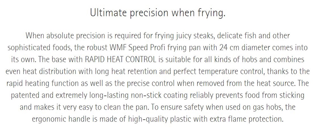 Rapid heat control: fast heating and precise regulation when the heat is removed ensure perfect and precise frying results. Ideal for high temperatures and searing steaks